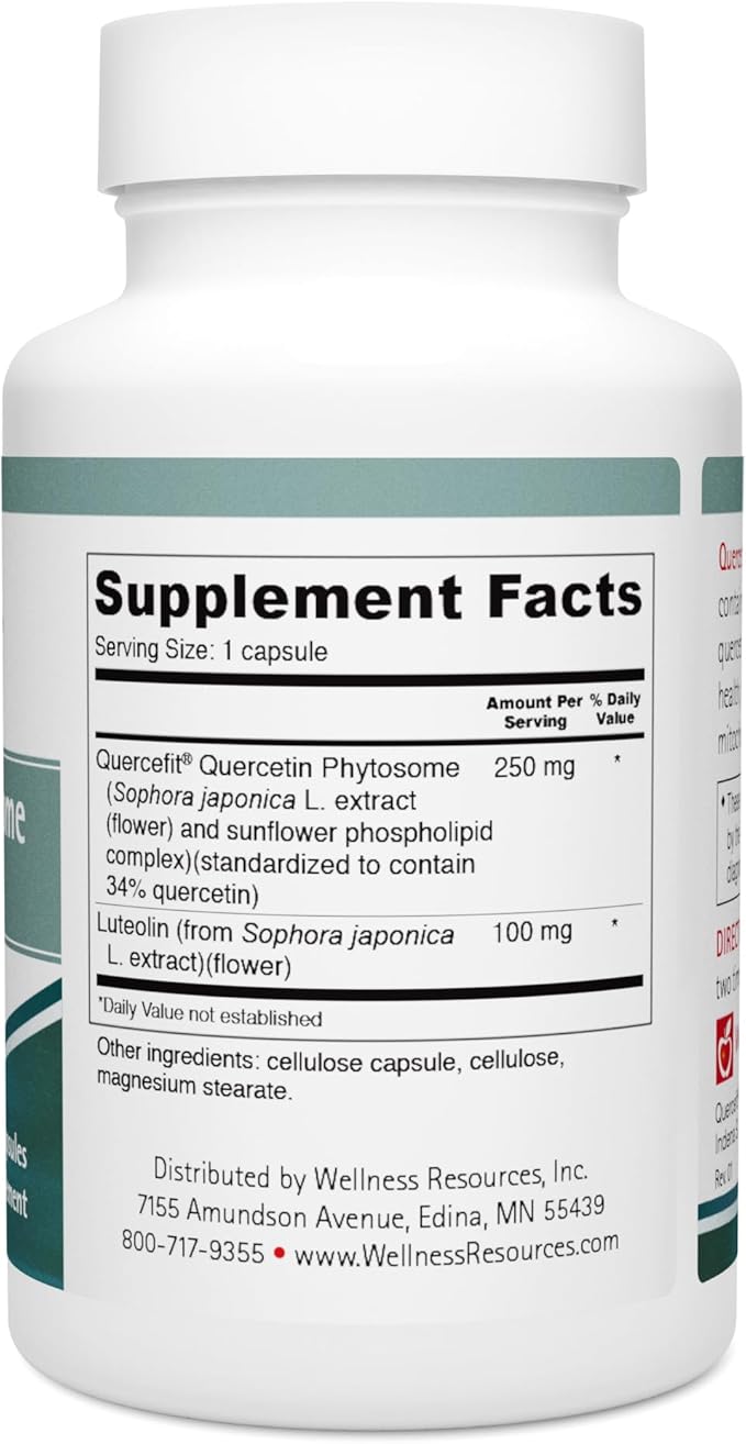 Wellness Resources Quercetin Phytosome 250 mg with Luteolin 100 mg, Mast Cell Stabilizer & Natural Histamine Support for Seasonal Allergies, NAD Support and Neuroprotective Supplement (60 Capsules)