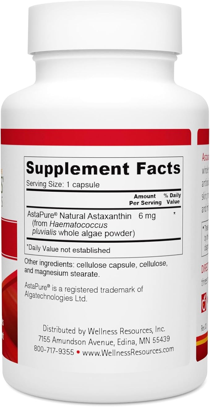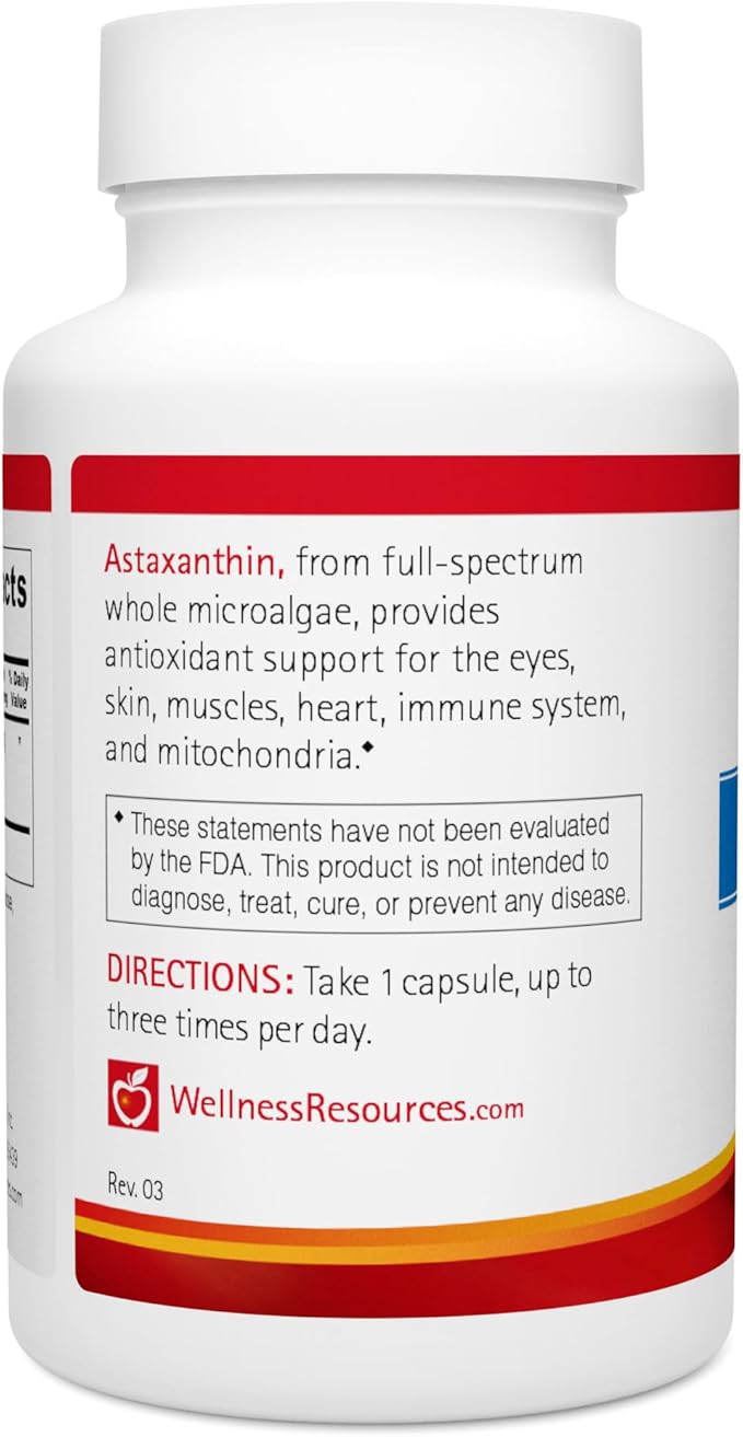 Wellness Resources Astaxanthin 6 mg | Wholefood Microalgae Haematococcus Pluvialis | High Potency Whole Algae Astapure | Astaxanthin Nutritional Supplement | 90 Capsules