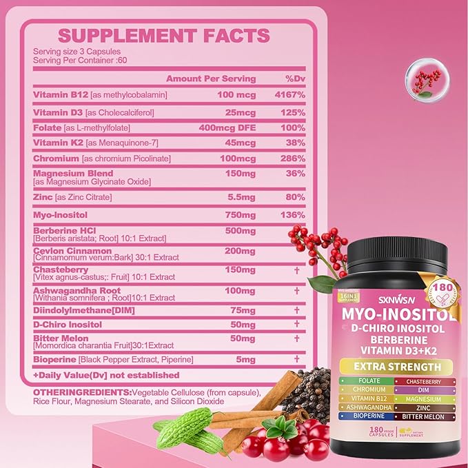 - Primary Supplement Type : Inositol, Vitamin B12, Vitamin D3, Vitamin K2, Zinc