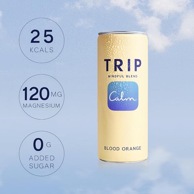 Trip Mindful Blend, Lightly Sparkling Calming Drink, 120 MG Magnesium Citrate with Ashwagandha, Lions Mane & L Theanine, No Added Sugar, Low Calorie, Vegan, Blood Orange, 12 Oz, 12Pk