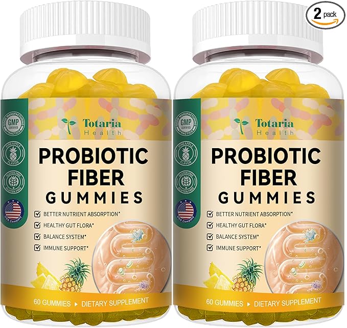 Probiotic Fiber Gummies, Pineapple Flavor, 60 Gummies per Bottle, 2 Bottles