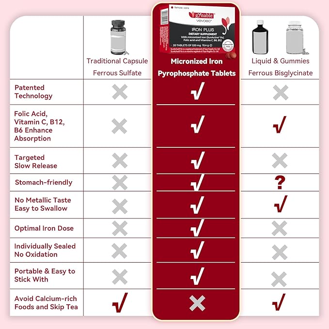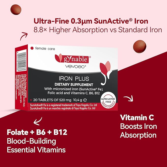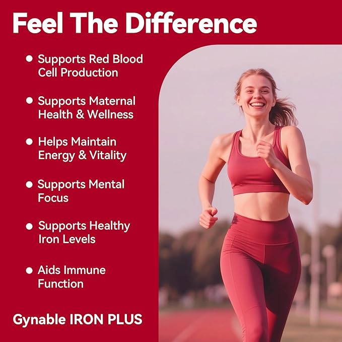 - 【Fast-Acting, Gentle Support】Based on a 90days clinical study, Gynable Iron Plus helped support healthy iron levels within 30 days—without causing constipation. This gentle iron supplement is ideal for those with low iron, helping reduce fatigue and support red blood cell health. Ideal iron supplements for women and men, especially those looking for non constipating iron supplements or iron pills for women with anemia