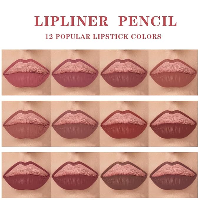 12PCS Lip Liner Pencils Set Pack for Shaping & Sculpting Lips, Modifieddark Lip Color Lipsticks,Long-Lasting Waterproof Lipsticks. (02, Color)