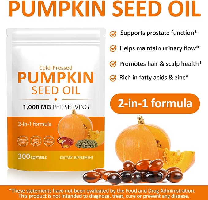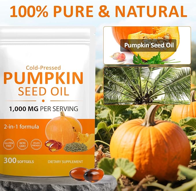 Pumpkin Seed Oil Capsules, 2-in-1 Formula with Saw Palmetto for Hair, 1000mg 300Softgels Rich in Fatty Acids | Supports Hair Heart