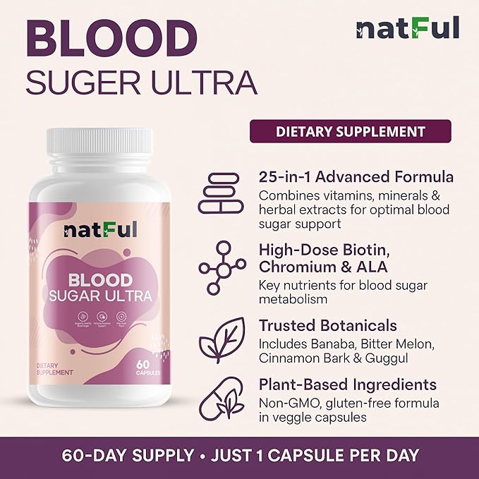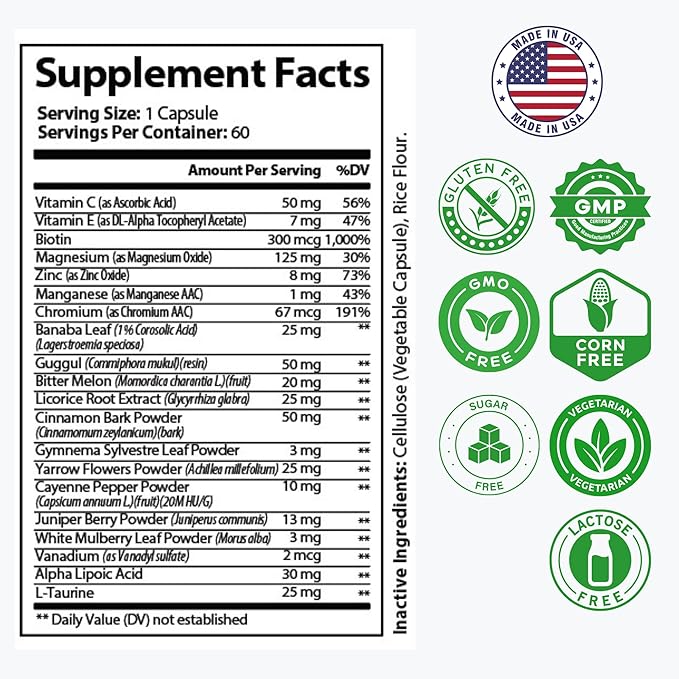 - Botanical Nutrient Complex – Crafted with a blend of Banaba Leaf, Bitter Melon, Cinnamon Bark, and Guggul, inspired by traditional wellness practices.