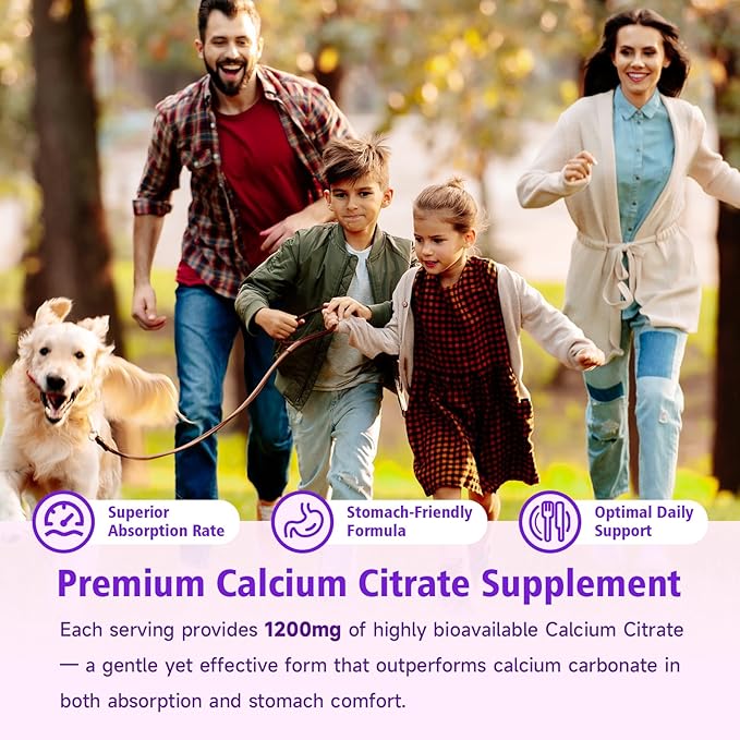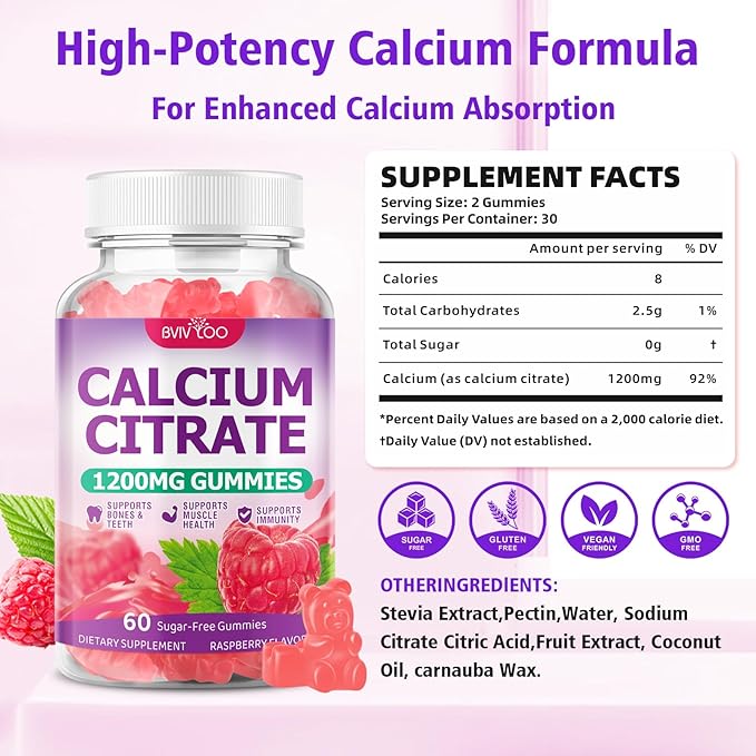 - Stronger Bones & Teeth – Each gummy provides 1200mg of premium calcium citrate, a highly absorbable form of calcium, For optimal bone density, joint health, and teeth strength. Ideal for all ages and lifestyles!