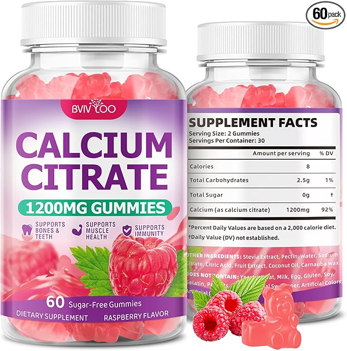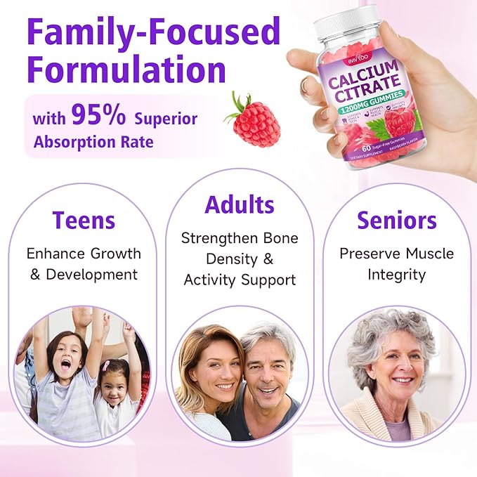 - Stronger Bones & Teeth – Each gummy provides 1200mg of premium calcium citrate, a highly absorbable form of calcium, For optimal bone density, joint health, and teeth strength. Ideal for all ages and lifestyles!