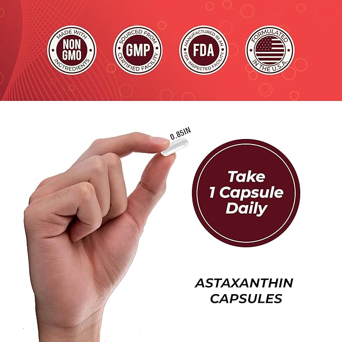 - ✅ Convenient Once-Daily Routine – 60 Astaxanthin Supplement Capsules – Take just one capsule daily with a meal for consistent antioxidant support. Each bottle provides a full 60-day supply, formulated in the USA and delivered in fast-absorbing softgels.