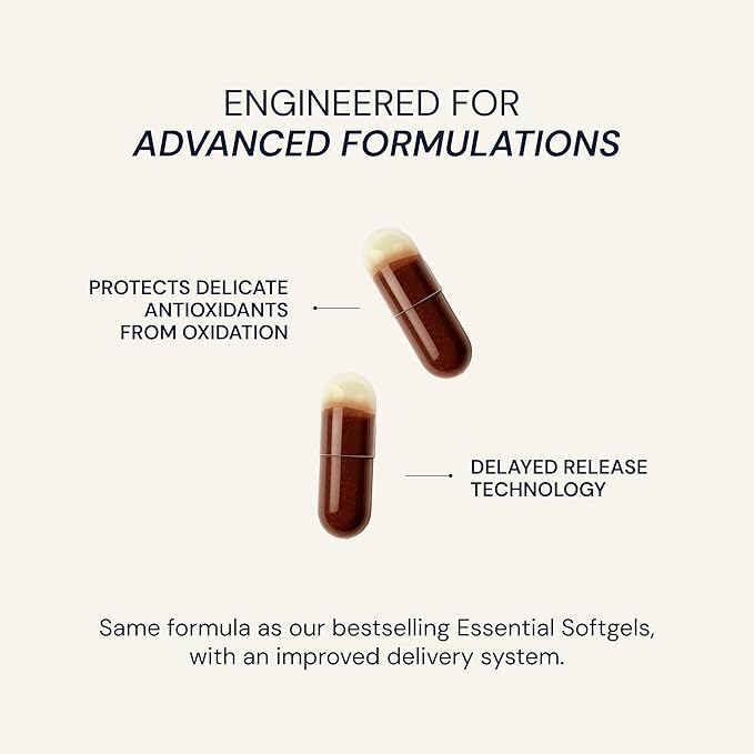 - Updated Formula of Essential Softgels – Now in vegan capsule form, this advanced antioxidant blend replaces Blueprint’s original Essential Softgels, offering the same high-quality nutrients in a cleaner, updated formula.