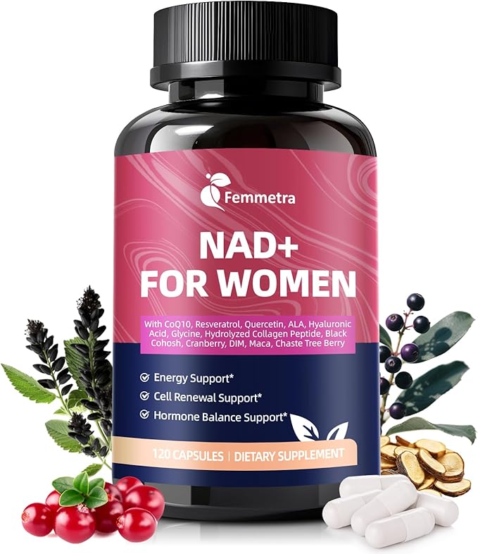 - NAD Supplement for Women - Support your body’s natural NAD+ levels with our advanced formula. As we age, NAD+ declines, leading to fatigue, slower cellular repair, and hormonal imbalances. Femmetra Liposomal NAD+ (β-NAD+) ensures superior absorption, working alongside CoQ10, resveratrol, and quercetin to revitalize energy, enhance cellular function, and promote healthy aging