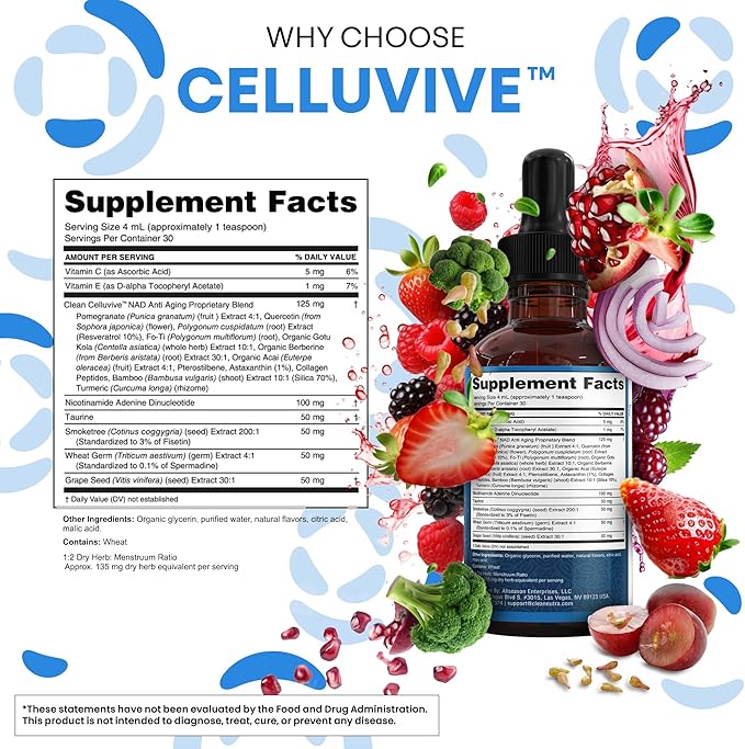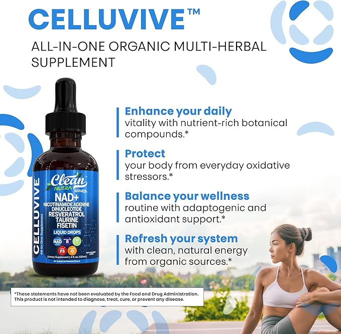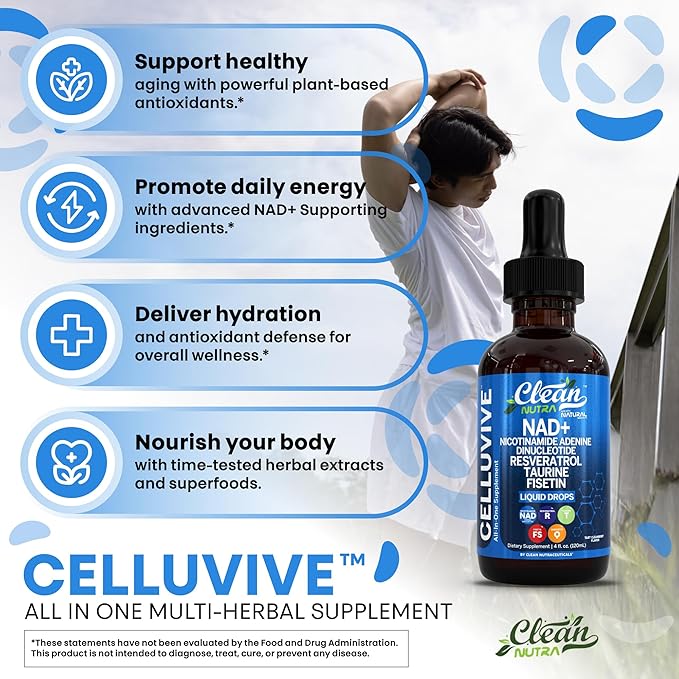 - Introducing the Clean Celluvive NAD+ Blend: our proprietary infusion delivers trans resveratrol with resveratrol organic harvested from japanese knotweed, enhanced by quercetin, turmeric, astaxanthin and polyphenols supplement botanicals for layered cellular defenses. Trans-resveratrol teams with vitamin E, collagen peptides and bamboo-derived silica to nourish skin, joints and connective tissue, promoting graceful aging, smooth complexion and flexible mobility from the inside out.