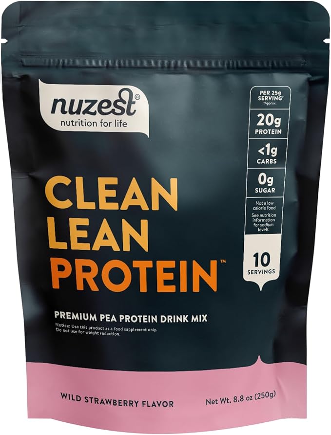 Nuzest - Pea Protein Powder - Clean Lean Protein, Premium Vegan Plant Based Protein Powder, Dairy Free, Gluten Free, GMO Free, Protein Shake (8.8 Ounce (Pack of 1), Wild Strawberry)