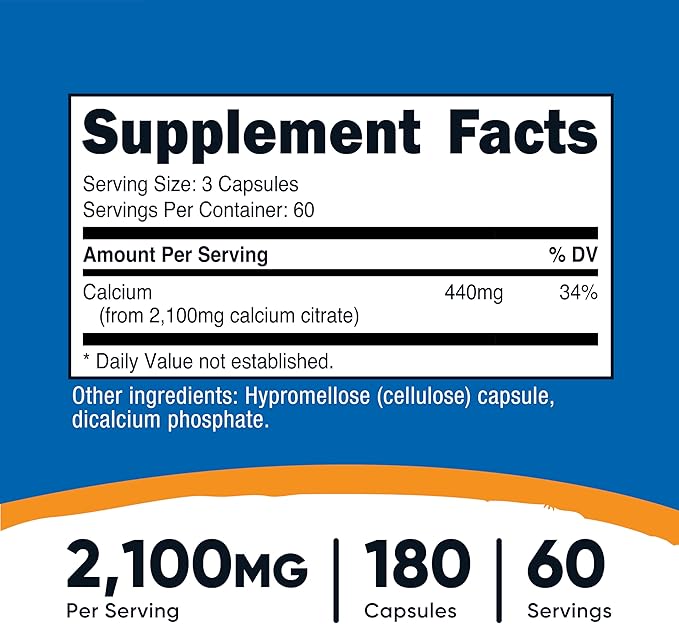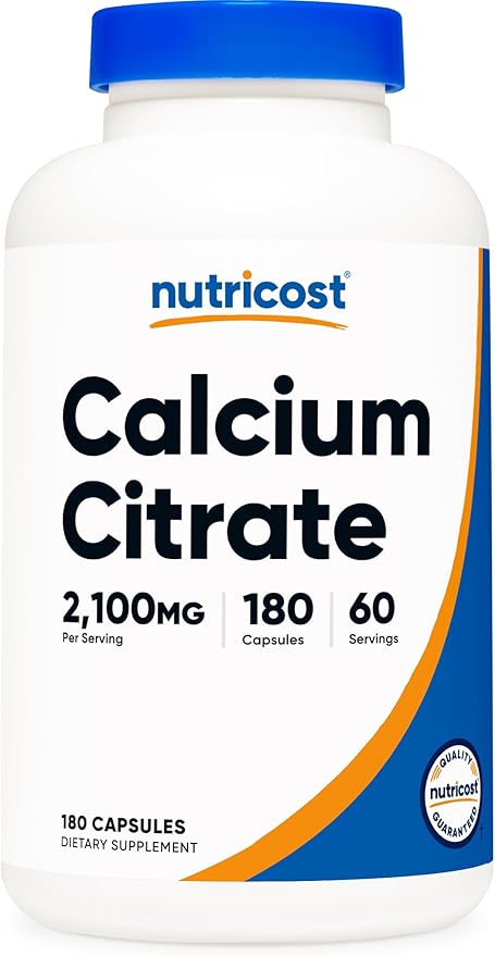 Nutricost Calcium Citrate (2,100mg) 180 Vegan Capsules - GMO-Free, Gluten-Free, 60 Servings