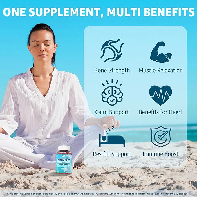 - 8 Forms of Magnesium Gummies - Our advanced magnesium complex gummies features 8 essential types, including magnesium glycinate, citrate, malate, taurate, chloride, oxide, orotate, and sulfate—far surpassing typical one- or triple magnesium complex. Unique magnesium blend supports calmness, muscle function, energy production, bone strength, and relaxation. Just One Bottle, All Your Magnesium Needs—Simplify Your Routine and Boost Your Well-Being.