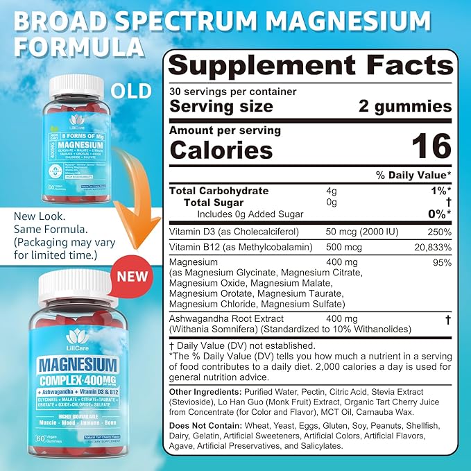 - Magnesium Ashwagandha Gummies for Natural Mood Boost - This powerful blend of magnesium ashwagandha, vitamin B12, and D3 supports a calmness, balanced mood, and resilience to daily . With 400 mg of ashwagandha root extract, magnesium and B12 enhance brain function and relaxation, while vitamin d3 2000iu helps lift your positive mood, especially during low-sunlight seasons. Stay calm, energized, and ready to take on the day with this comprehensive mood support formula!