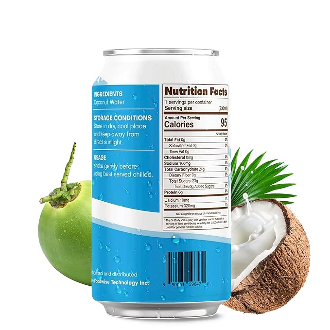 VIIBI Coconut Water, NO added Sugar, The Original Flavor - Made with Fresh Coconut Water, Natural Electrolytes for Hydration, Hydration with Electrolytes, 11 Fl Oz (Pack of 24 Cans)