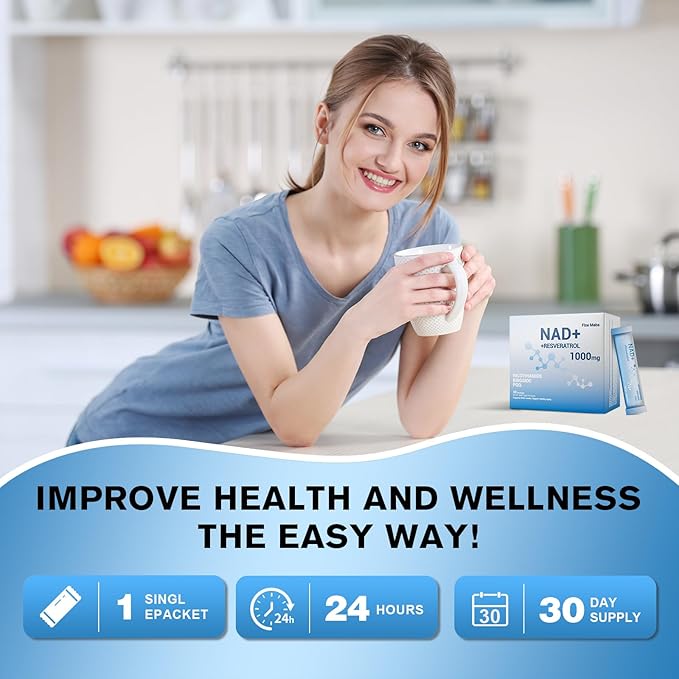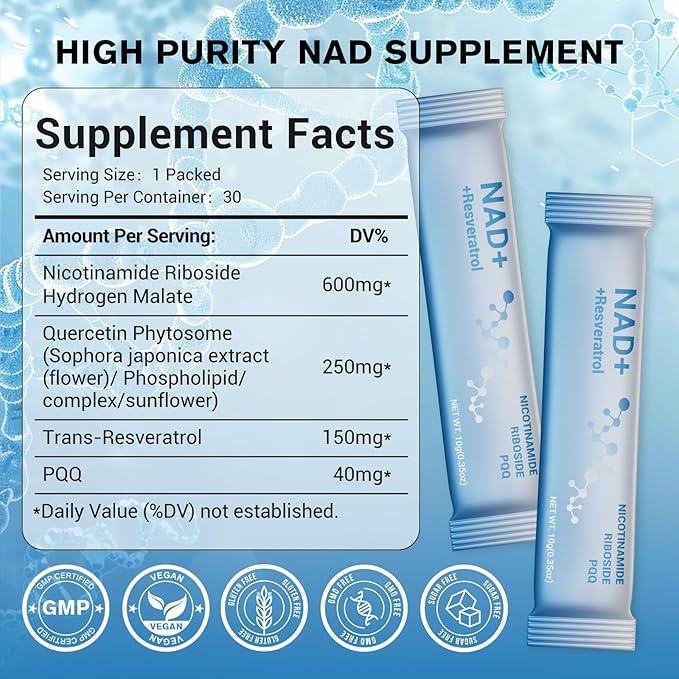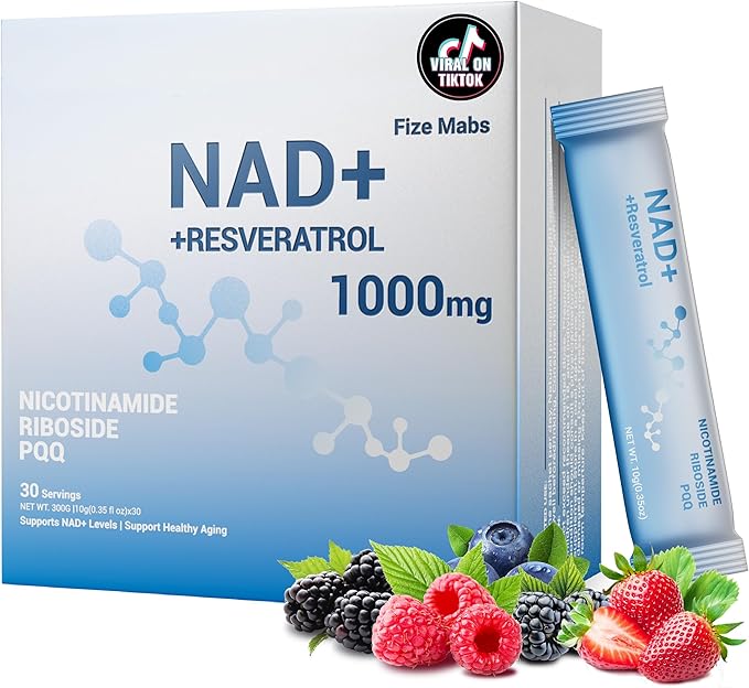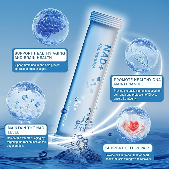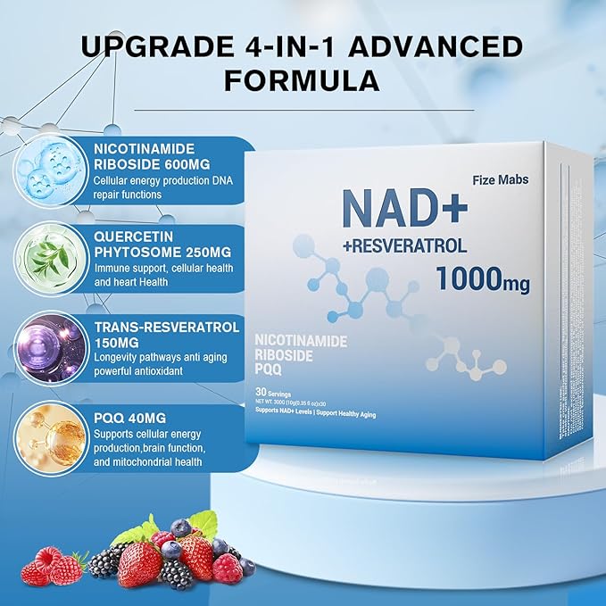 Premium NAD+ Liquid Supplement, 1000mg Per Serving, Nicotinamide Riboside & Resveratrol with PQQ, Pure Organic, Fast-Absorbing for Cellular Energy & Healthy Aging - 30 Packs