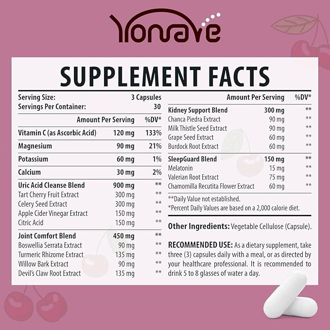 - Uric Acid Cleanse & Joint Comfort: Our advanced formula, featuring tart cherry, celery seed, and vitamin C, improve sleep quality while supporting the body's natural uric acid balancing and cleansing process