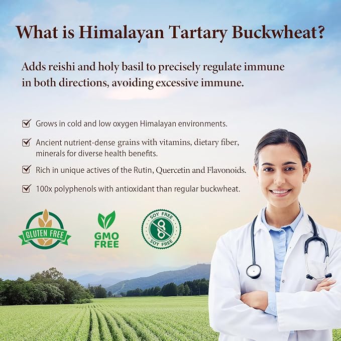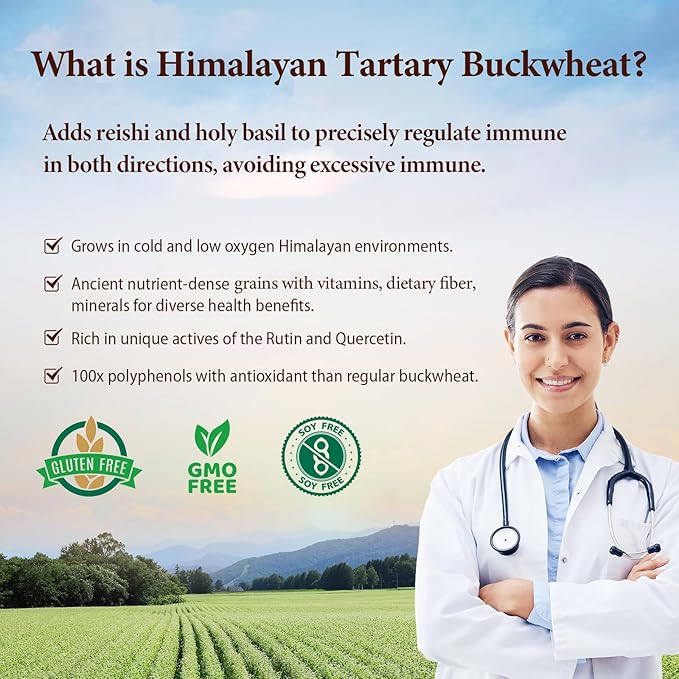 - IMMUNE FROM QUERCETIN IN HIMALAYAN TARTARY BUCKWHEAT - Tartary buckwheat grown in the Himalayan mountains is high concentrations of quercetin, flavonoids and 6X more rutin than regular buckwheat. Super antioxidant polyphenols activate immune cells such as macrophages, NK cells, protecting cell activity, and support immune