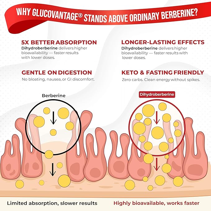 - Promotes efficient metabolic activity with a plant-based approach: Dihydroberberine (GlucoVantage) supports cellular energy and metabolism – working in synergy with Ceylon Cinnamon and Gymnema for balanced metabolic function.*