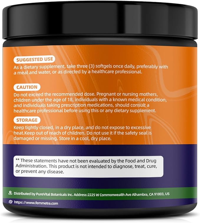 - [Premium Quality & Customer Support]: Every batch of Femmetra pumpkin seed oil capsules undergoes rigorous purity and potency testing. The 180-capsules bottle provides a 90-days supply, Take it consistently for better results. If you have any questions, please contact our support team and we will provide a 100% satisfactory answer.