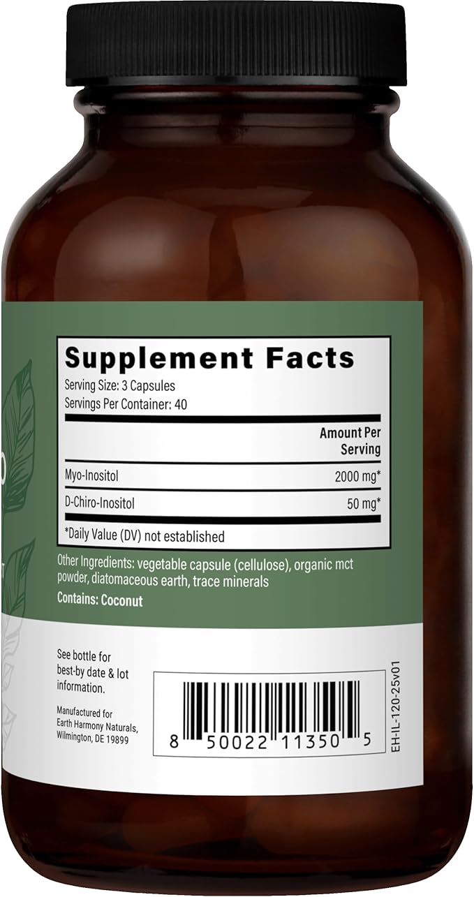 Earth Harmony Myo-Inositol & D-Chiro Inositol Supplement for Women, Ovarian & Hormone Balance for Women - Supports Normal Cycles, Fertility Supplement (60 Capsules)