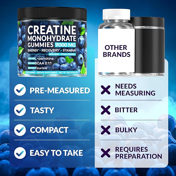 - Smart Daily Support: Perfect for athletes and beginners alike, this creatine gummy formula helps optimize workout results, enhance muscle definition, and boost ATP levels. Ideal creatine monohydrate for men and women focused on performance.