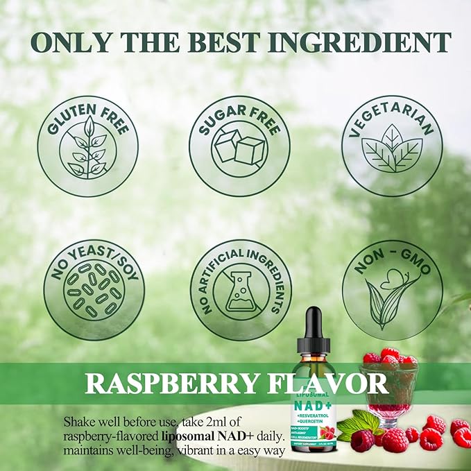 - Liquid NAD⁺ Easy to Take: Formulated in a liquid form with fresh raspberry flavor,AMENQ hHEALTH NAD⁺ liquid drops into your daily routine by taking just 2 ml,either directly or mixed with your favorite drink to boost in your energy levels and overall vitality.