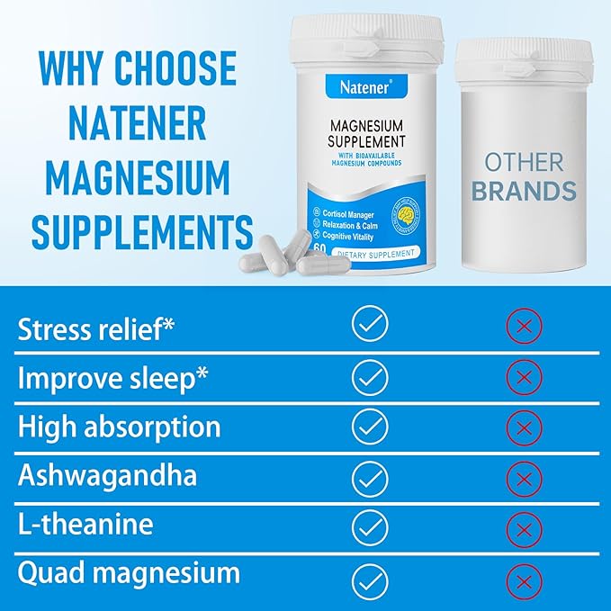 - For Demanding Lifestyles: Natener's Magnesium Complex is crafted for individuals with active lives, such as professionals, students, and those who spend significant time online, looking for nutritional support to help maintain mental sharpness and overall well-being throughout the day. Just two capsules daily.