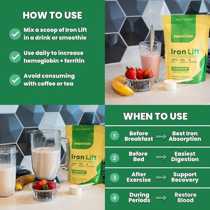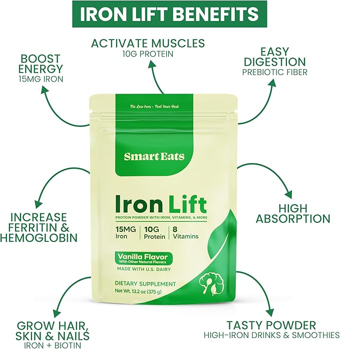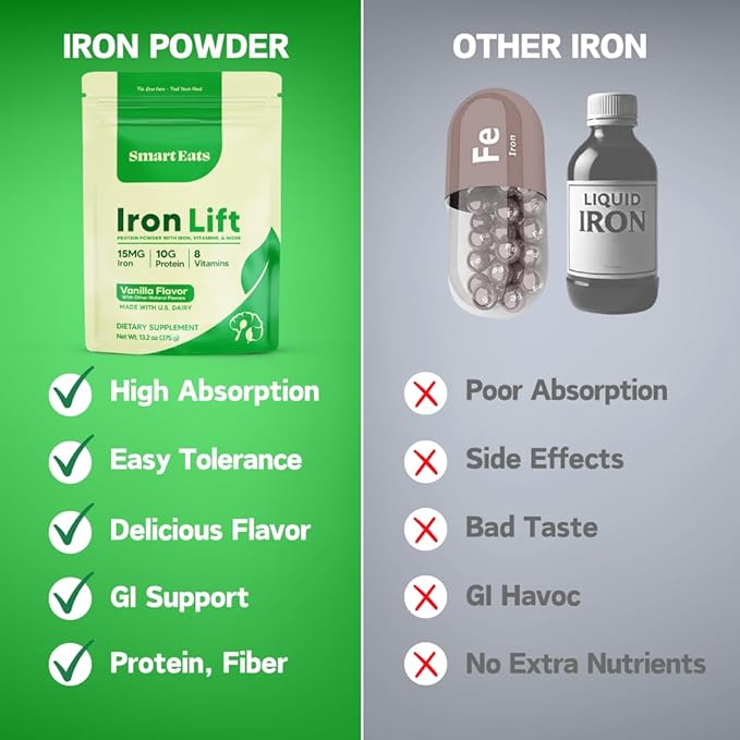 Smart Eats - Iron Powder | Highly Absorbed | Avoids Side Effects | Complete Nutrition: Protein, Vitamins, Fiber | Tasty Drinks & Shakes | Boost Hemoglobin, Ferritin | Vanilla Flavor | 15 Scoops