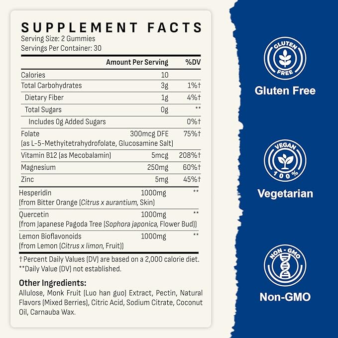 - 120 Gummies Per Bottle: Each bottle contains 120 gummies, offering a 60-day supply of flavonoids (2 gummies per day).