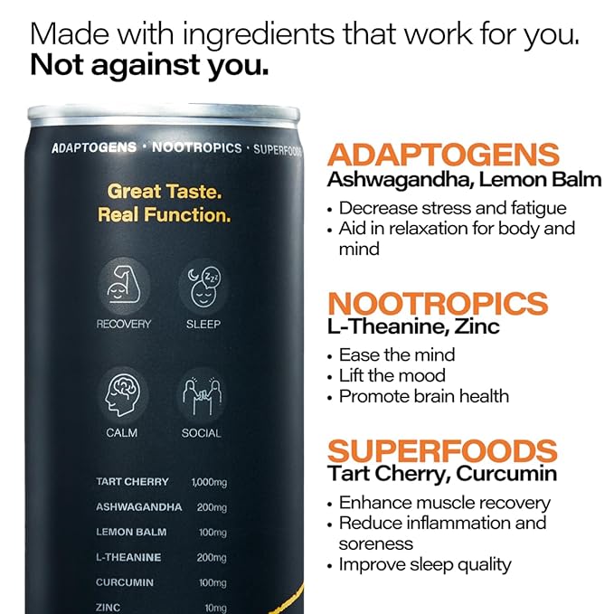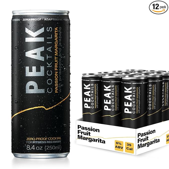 Peak Cocktails Non-Alcoholic Cocktail | Mixologist-made | Adaptogens, Nootropics, Superfoods for Recovery, Calm, Sleep | Ashwagandha, Tart Cherry, L-Theanine | Passion Fruit Margarita | 8.4oz, 12-Pack