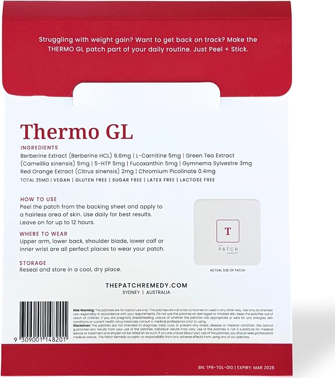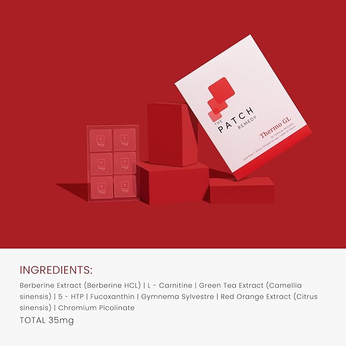 Thermo GL Patch - GLP-1 Patches with Berberine, Green Tea, L-Carnitine, 5-HTP, Fucoxanthin | 30 Patches