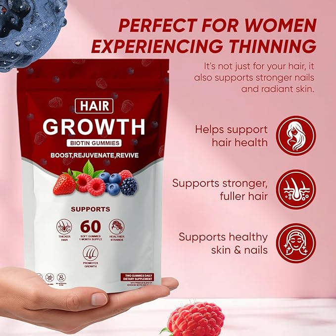 - Beyond Hair: Skin & Nail Benefits More than just a hair supplement—regular use helps enhance skin’s natural radiance and strengthens nails, reducing brittleness. It’s a convenient way to support overall beauty from the inside out.