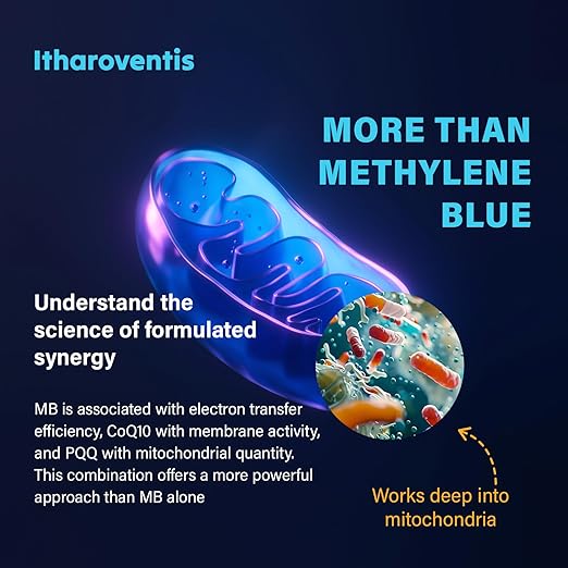 - Mitochondrial Energy Synergy: Blue Methylene pharmaceutical grade, CoQ10, and PQQ each play distinct roles in cellular processes. MB is associated with electron transfer efficiency, CoQ10 with membrane activity, and PQQ with mitochondrial quantity. This combination offers more benefits than MB alone