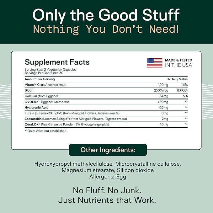 - STRENGTHEN HAIR & NAILS: Biotin and eggshell membrane collagen hair and nails vitamins for women and men provide the essential building blocks for keratin and collagen production. This support thicker hair, stronger nails, and firmer, more resilient skin.