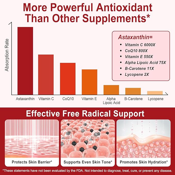 - Each capsule contains 12mg of natural astaxanthin,high Concentration Astaxanthin.