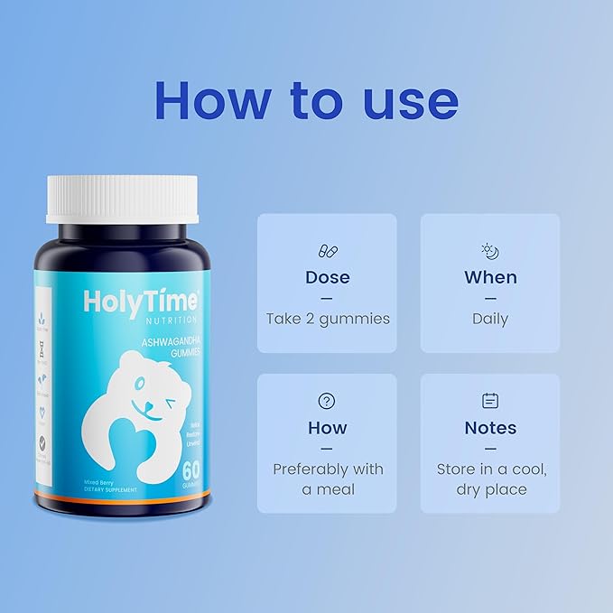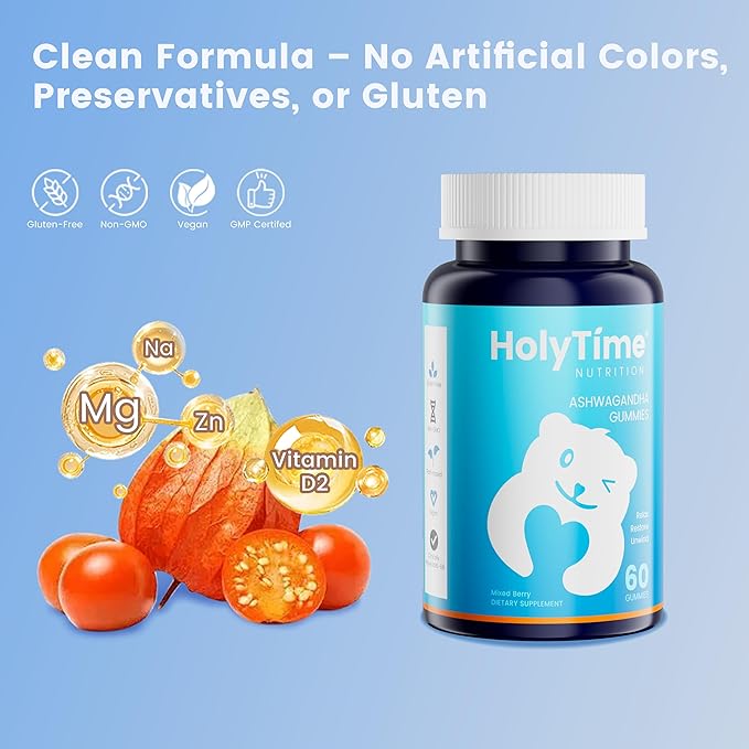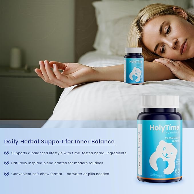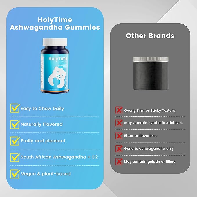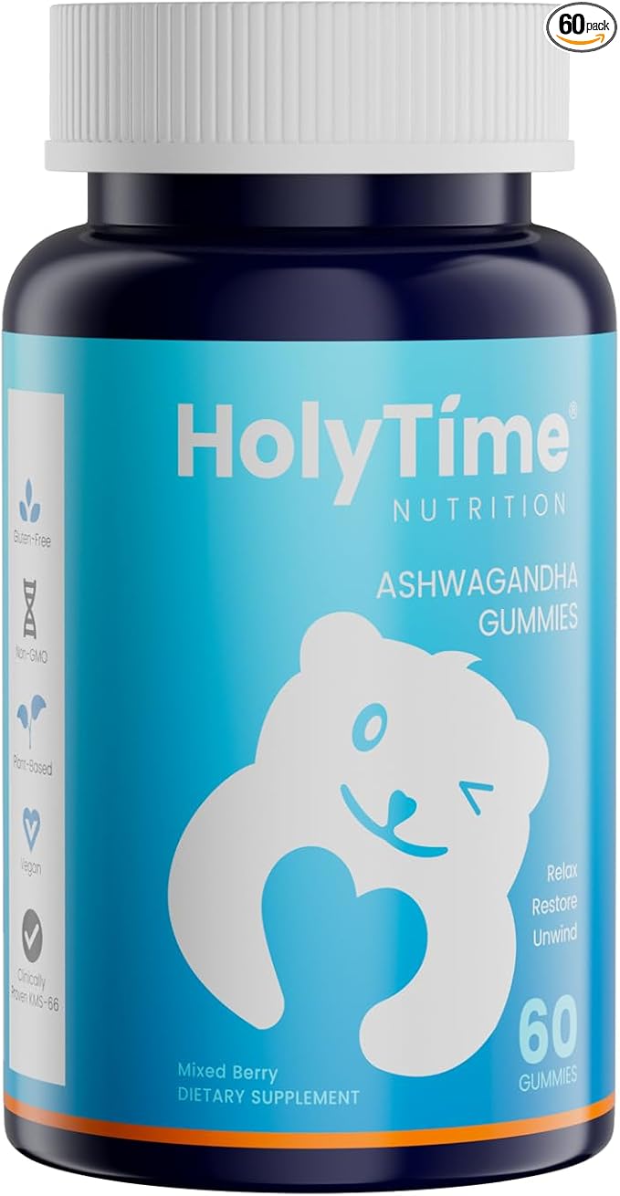 HolyTime Ashwagandha Gummies – 60 Vegan Soft Chews,KSM-66 – Natural Herbal Blend for Everyday Balance – Plant-Based & Gluten-Free – Vegan Friendly & Daily Wellness Support