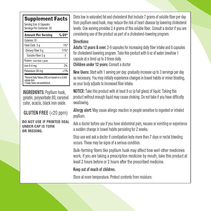 - 💊 CONVENIENT CAPSULES – Easy-to-swallow capsules deliver fiber without the need for mixing powders or shakes.